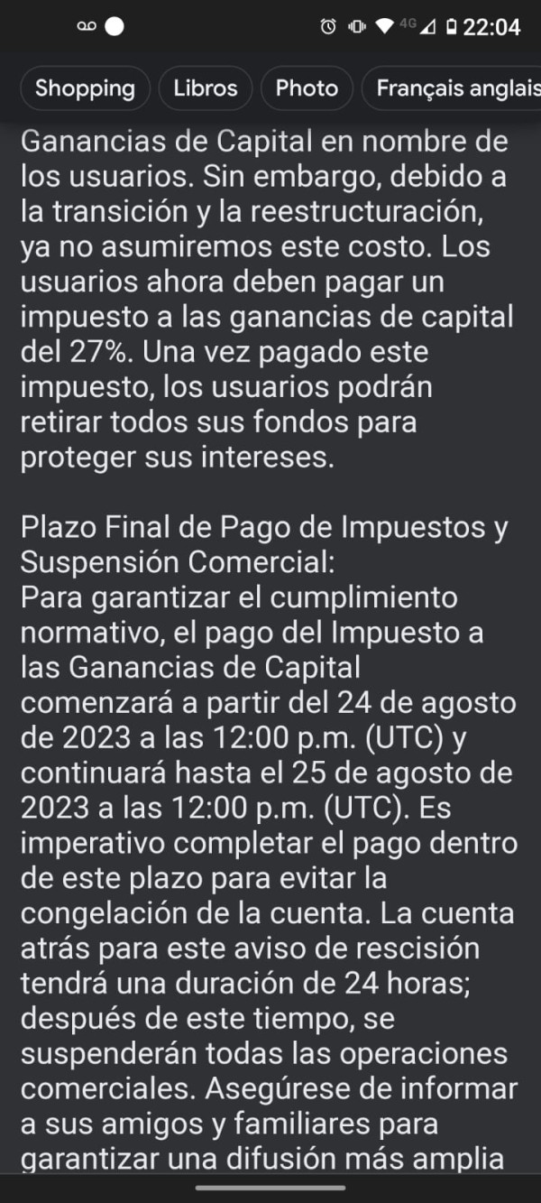 hola de vuelta , esta es la 4ta vez que intento exponer los sucesos que nos pasó a todos los usuarios de la plataforma de blafx nos bloquearon las cuentas sin previo aviso y nos exigen un pago del 27% del total de nuestras cuentas para poder liberarlas tengo invertidos 1900us las cuales no quiero perder les pido ayuda