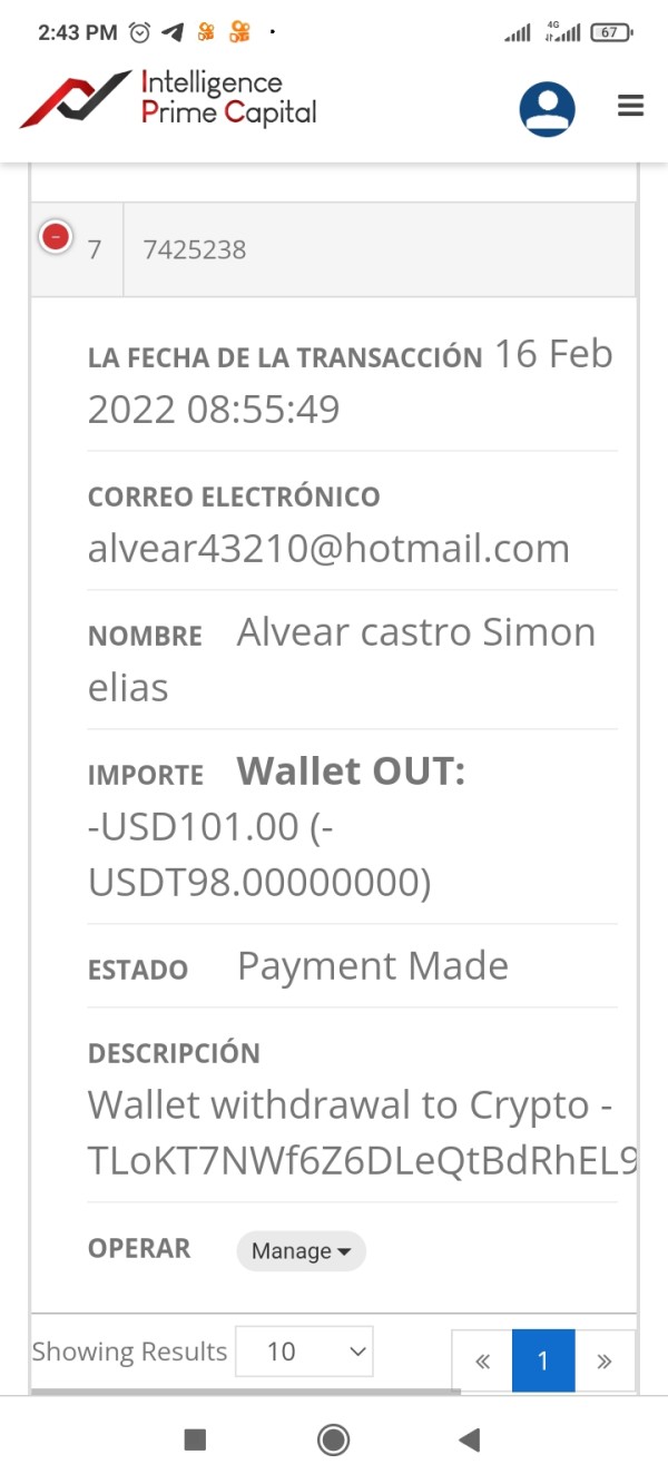 This broker is having problems making withdrawals to client wallets, it also discounts the capital and does not return it, for example, I requested a withdrawal on February 19, 2022 and to date I have not received the requested withdrawal. Thank you