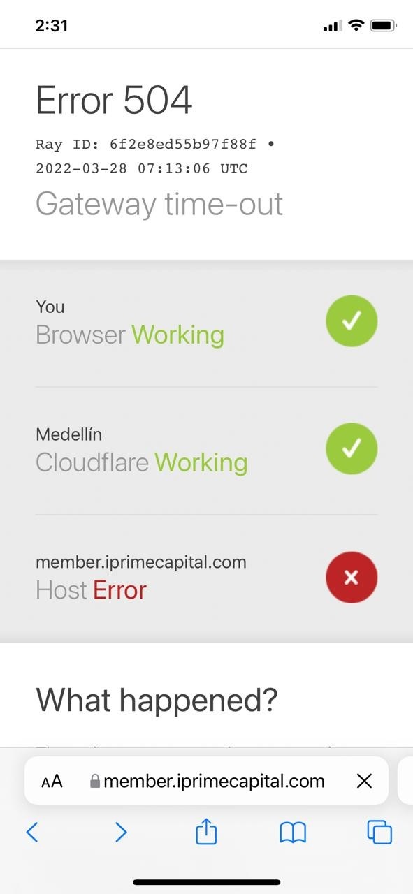ya no deja 3mtrar ala página para retirar mi invercion ni deja entrar aparece con error 504 son mis dos cuentas la de mi esposa y mia