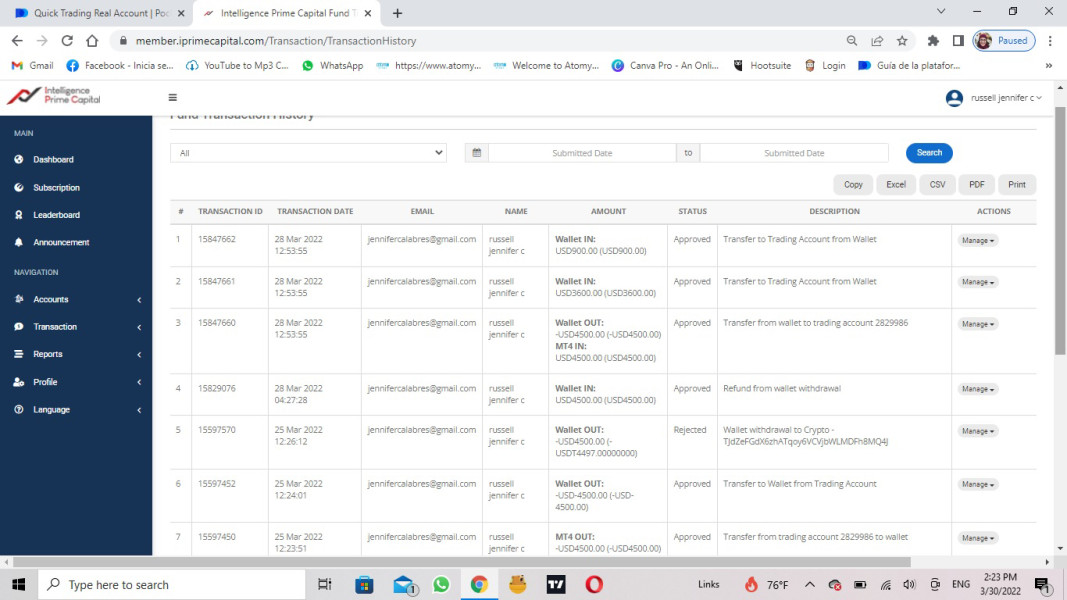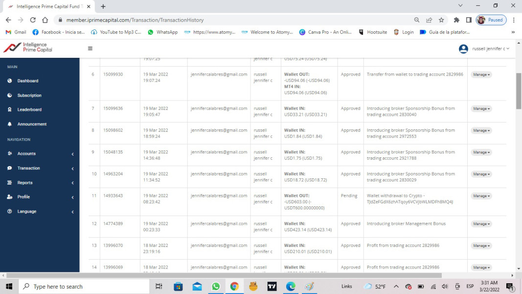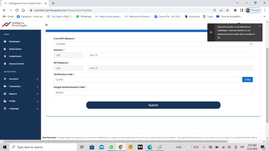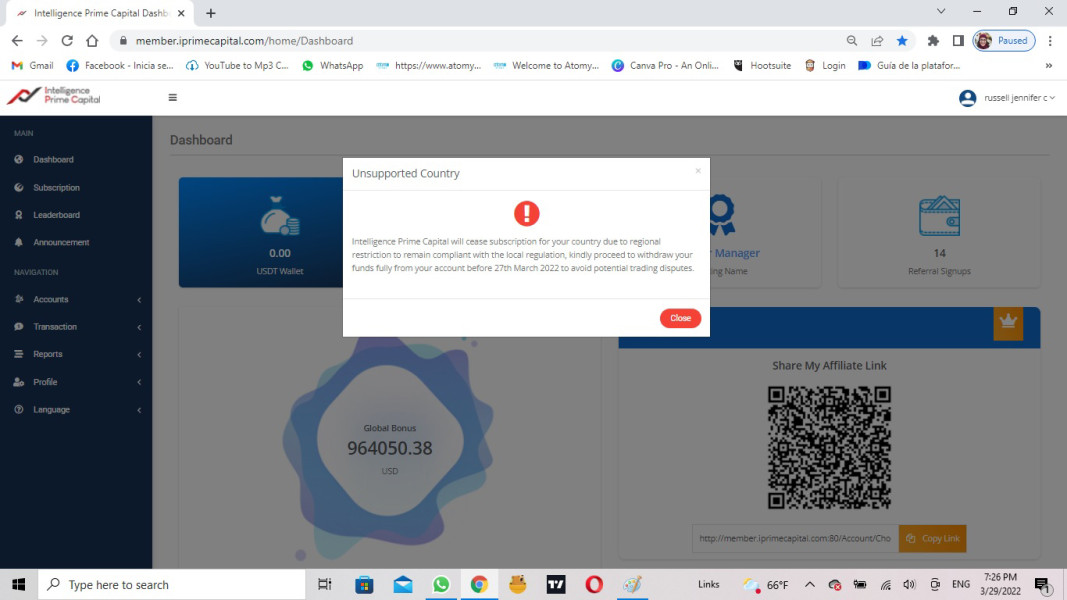 realice un retiro el día 25 de abril, fue rechazado por la empresa y reingresado para invertir. El día 29 de marzo sale un aviso en mi cuenta que debo sacar mis fondos antes del 27 de marzo porque dejarán de operar en mi país! pero mi retiro nunca se hizo efectivo! lo rechazaron e ingresaron a la cuenta el día 29! He tratado de realizar retiros varías veces pero es imposible. He enviado muchos correos electrónicos a la empresa y no tengo respuesta, el chat en live que tenían ya no existe, cambiaron el. perro electrónico para reclamaciones y aún no tengo respuesta! tengo otra cuenta con ellos y ha sido lo mismo! recabarán los retiros y deshabilitada las cuentas.