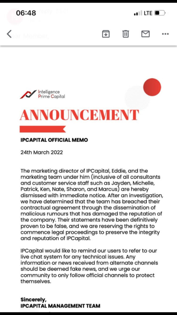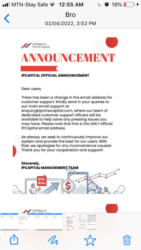No one subscribed iprime capital has been able to withdraw for 3weeks now. first we got an announcement that they sacked all the management team . then we didn’t get our profits into our usdt wallets and since the. we haven’t gotten any profits into our wallets it’s been 3weeks now no withdrawals what’s sir ever all we hear is they are working on ipcloud . the bot still trades but we don’t get to see the profits talk less or withdraw