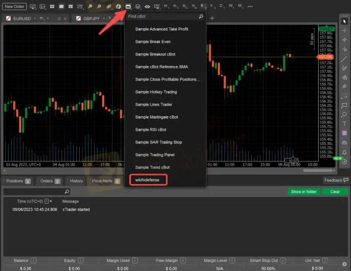 Wählen Sie das WikiFxDefense Sky Eye Shield-Skript in der Strategieliste aus und führen Sie die folgenden Vorgänge aus: