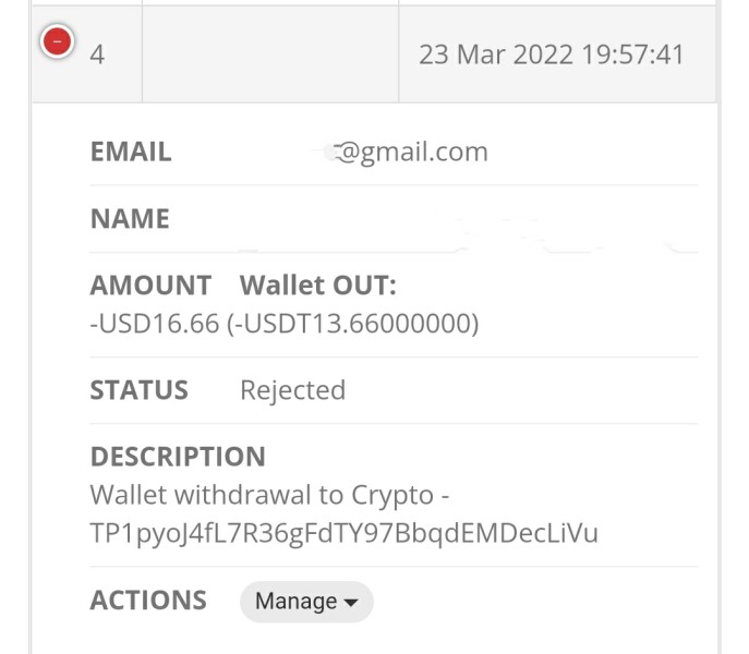 El 23 de Marzo hice un retiro de $16.66 y el 26 de Marzo otro por $850, y este es el momento que aún no llega, nadie responde, ni soporte ni nadie, y el estado de la operación es Rejected, me parce que sucede algo fraudulento, mucha atención!!!!