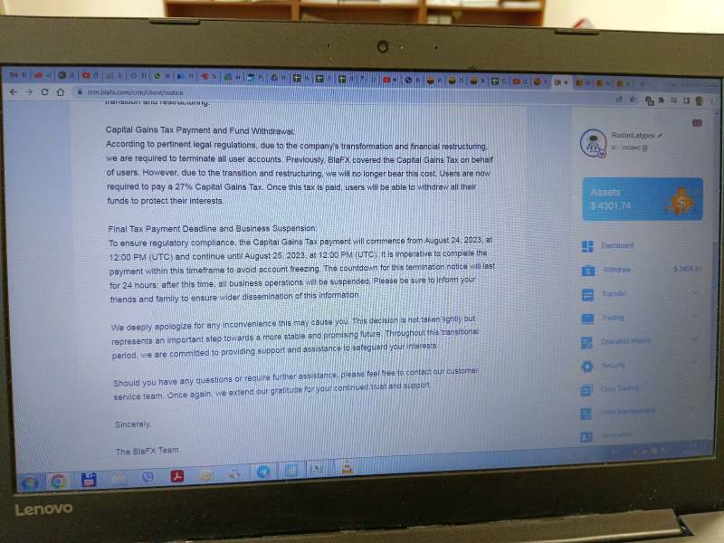 Заблокировали вывод денежных средств с 19.08.2023 под предлогом акции и слияния компании. Требуют внести 27% от депозита для доступа к моим денежным средствам. Сегодня 25.08.2023 планируют закрывать свой сайт и присвоить все мои деньги.