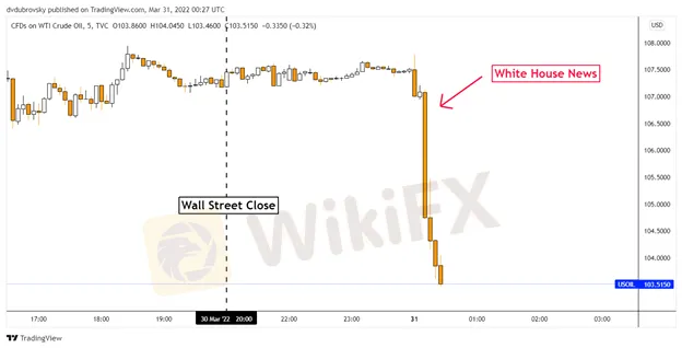 WTI MARKET REACTION – 5MIN CHART