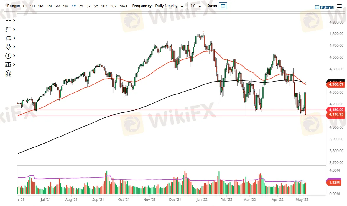 Abstract:The S&P 500 has gotten crushed on Thursday to show significant signs of negativity. The market continues to see a serious attempt to break through major support, and now it looks as if the 4100 level is going to be challenged. If we break down the hammer from last week, look out below. At that point, the market will more likely than not start to challenge the crucial 4000 level. By breaking down below the 4000 level, the market is likely to go much lower.
