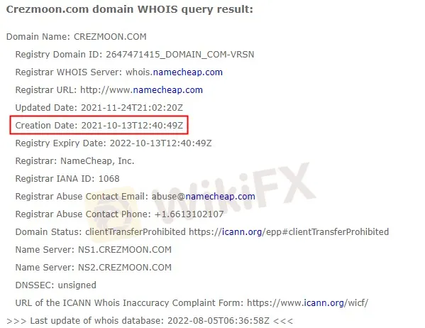 It is common to see a fraudulent forex broker create a website then disappear in one to two years and recreats another domain name. Crezmoon, therefore, could be part of this dangerous category of fraudulent financial companies.