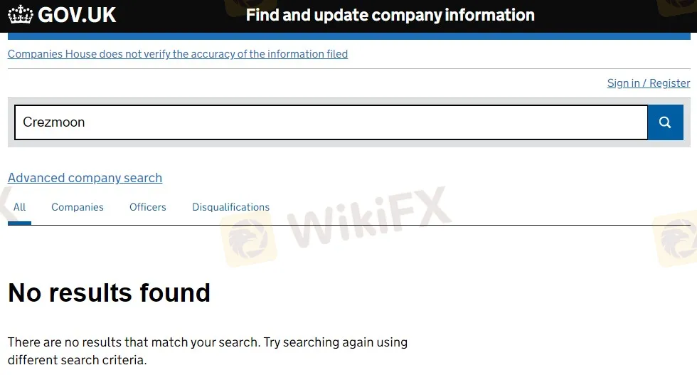 Then we searched CH and did not find any company named Crezmoon. So the scam is not registered in the UK.