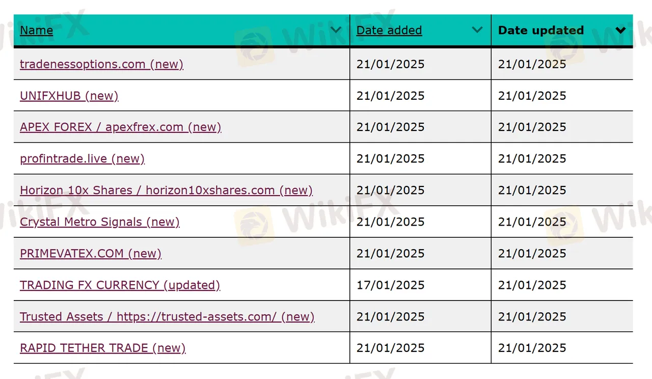 Abstract:On 21 January, 2025, the Financial Conduct Authority (FCA), the UK's primary financial regulator, expanded its warning list to include 10 additional unlicensed forex brokers that operate outside of the FCA regulation. The FCA warning lists, updated on a daily basis, remain an important tool intended not only to protect consumers but also to alert the financial services industry. When an FCA warning emerges, it signals red flags like unsolicited investment pitches, promises of unrealistic returns, or pressure tactics.