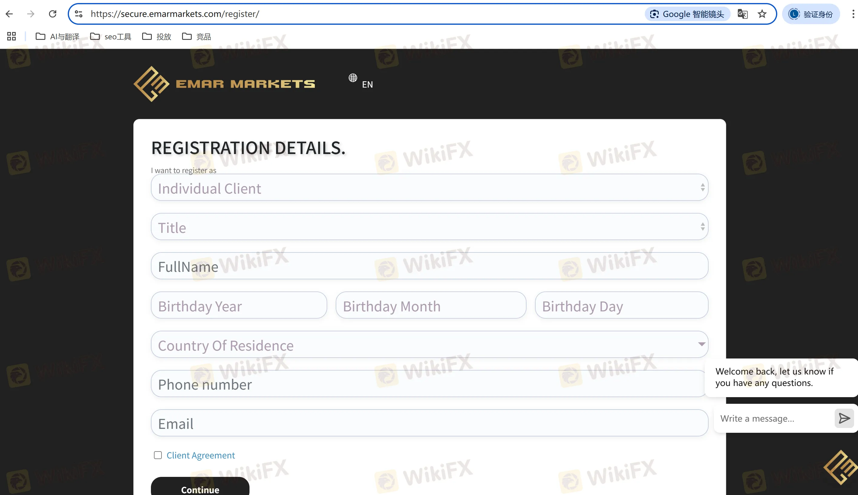 - Visit the official Emar Markets login page: https://secure.emarmarkets.com/register/