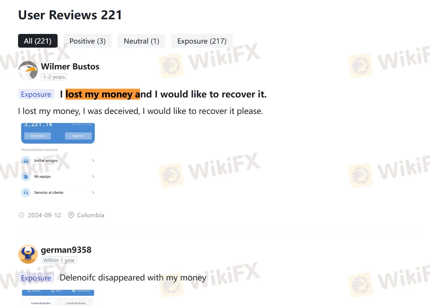 - Summary: Reports that Deleno IFC used a balance duplication strategy to trick users into depositing more money, preventing withdrawals in the process.