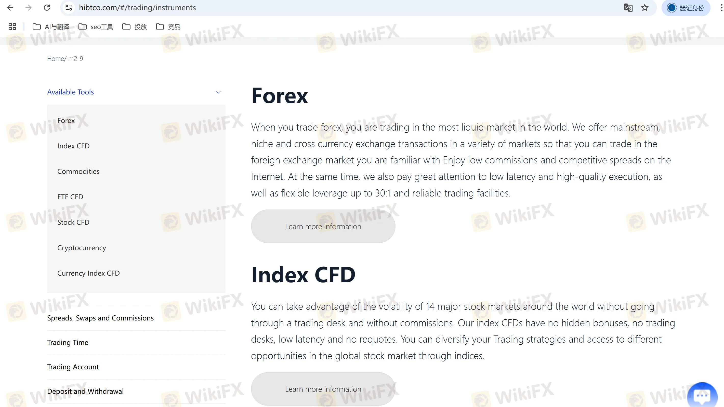 A2: HIBT provides a variety of trading instruments including forex, indices, commodities, cryptocurrencies, stock CFDs, and ETF CFDs.