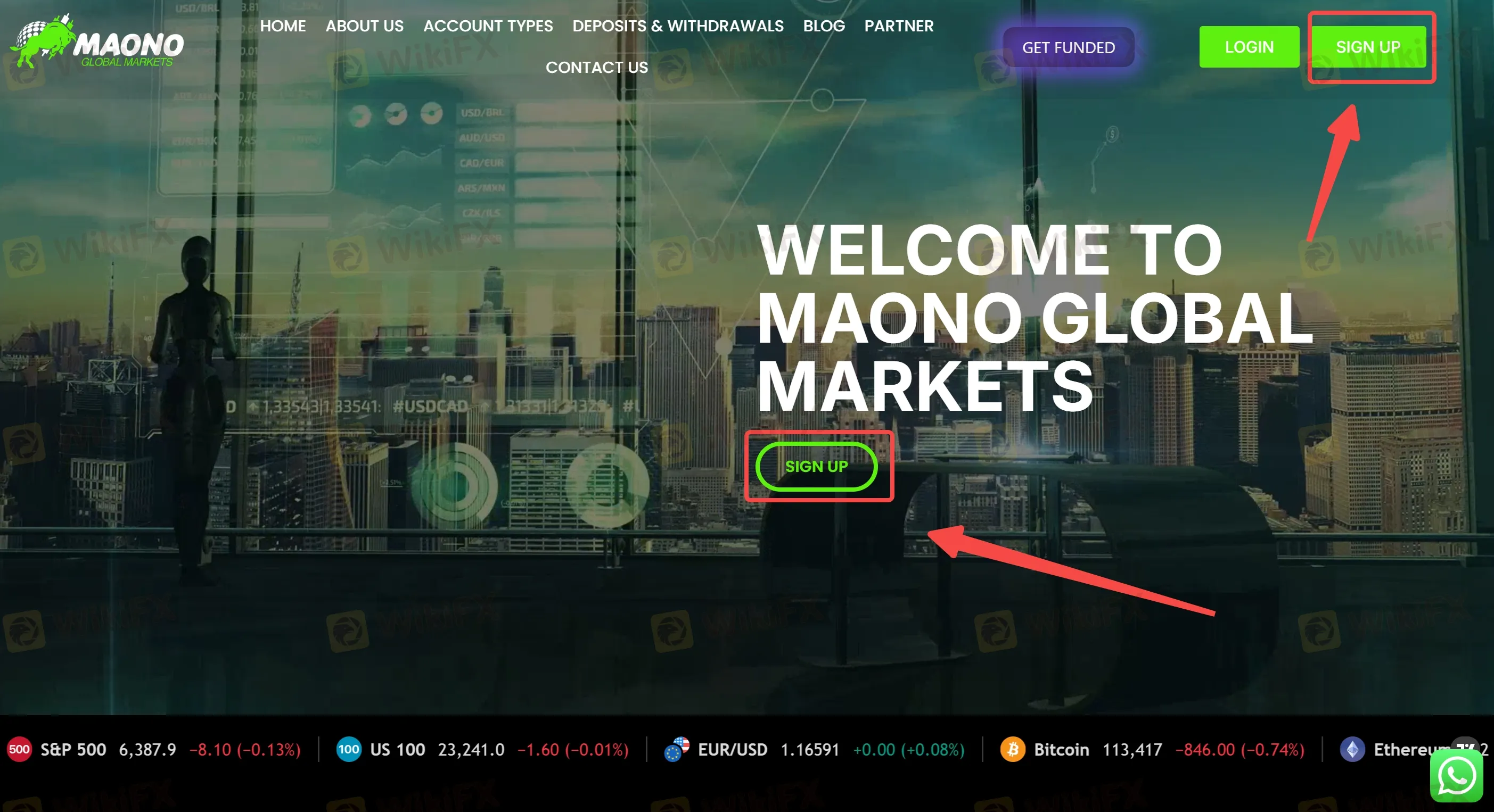 Visit the Official Website: Navigate to Maono Global Markets' homepage.