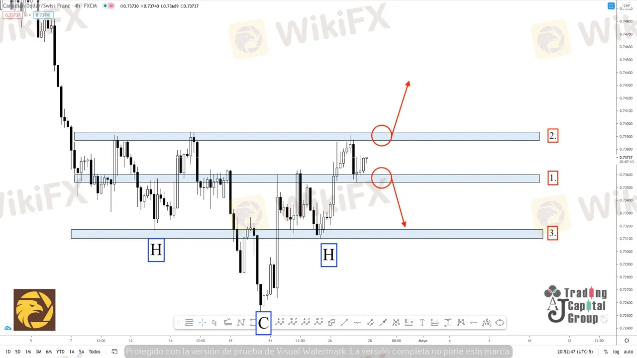 3. Sin embargo, el precio podría estar buscando un nuevo nivel de retesteo sobre la zona de los 0.73150 (3). Que de cerrar sobre esta, determinaría un nivel de oferta importante para asegurar un rally alcista.