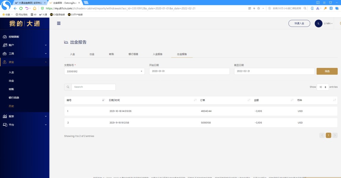 我是一个交易者,在大通这个平台也做了这么久了,从去年10月份到现在一直出不了金,你们说退出中国市场我资金退的慢我可以理解,但是都好几个月了一直都不处理,这是你能对客户的态度吗,你们这么搞谁还敢用你们平台。