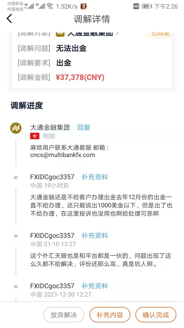 大通不给客户出金半年多了