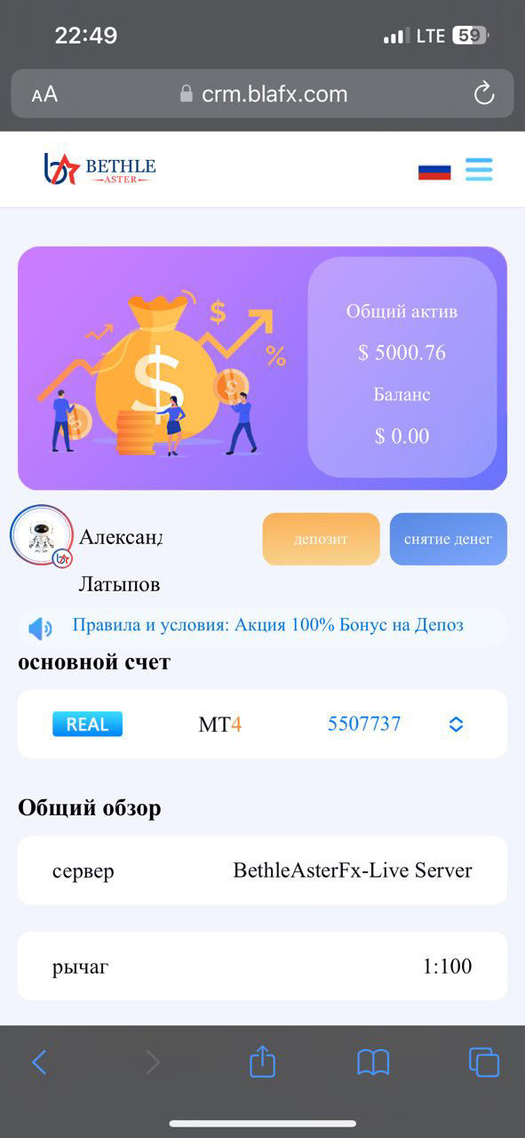Здравствуйте! все началось с того что весной этого года мне в instagram написала девушка из Китая, представилась она как Лю Тинтин, после нескольких дней общения она предложила мне зарабатывать по ее сигналам на торговой площадке под названием DeFi. Все шло хорошо, я получил небольшую прибыль после чего она сказала выводить мне свои деньги и переходить на следующий проект который она создала совместно с трейдерами которые давали сигналы Ark Community под названием BLaFX, утверждая что этот проект будет более маштабным и прибыльным. Я сразу вложил туда все деньги которые вывел из DeFi и по началу шло все хорошо, я копировал сделки трейдеров, получал прибыль, мог вывести деньги. На протяжении всего времени девушка из Китая которая меня пригласила активно писала мне о том что я должен приглашать друзей, родственников, говорила чтоб они брали кредиты т.к. она гарантирует что мы не потеряем свои деньги. Внезапно BLaFX сообщает о проведении акции +100% к депозиту и на протяжении всей акции будет запред на вывод средств, перед этой акцией не было никаких объявлений ни на почту, ни на сайте о том что будет запрещен вывод денег, это является грубым нарушением 19.08 Лю Тинтин уговаривает меня внести 2000$ на свой депозит чтоб получить бонус. 22.08 я узнаю от поддержки что запрещенно вывести деньги пока идет акция. Через пару дней после этого поддержка говорит что на моем аккаунте были подозрительные действия и для вывода средств нужно внести депозит в размере 15% от общего депозита, чуть позже на сайте появляется объявление о том что сайт прекращает свою деятельность и для вывода средств нужно уже внести 27%, На сайте поддержка писала что нужно обратиться в их телеграмм @Blafx967, при общении с поддержкой начались оскорбления в мою сторону и не дали никакого нормального объяснения по поводу подозрительных действий с моего аккаунта. Помогите пожалуйста вернуть деньги