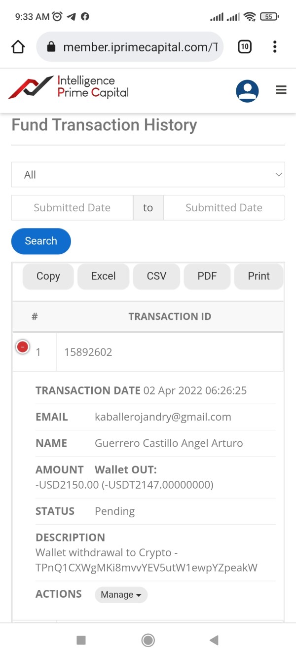 no e podido retirar dinero mime permite retirar mi imbercion cuatro semanas sin poder retirar dinero no hay comunicación con la con la mamá mpresa quitaron el chat no dan esperanza de nada estamos en el interperie nos endeudamos con esperanza de ganar algo y poder Aser una casita pero no hay profesionalismo de parte de intelligence prime capital estamos mal así los registros de las fechas anteriores del mt4 ya no aparecen las ganancias generadas que salen en el mt4 no suman ala Walle está muy mal esta situación de sería poder recuperar mi dinero
