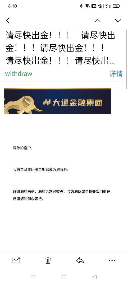 黑心商家 2月份的出金申请到现在也不给扣款 客服联系不上 只要邮件