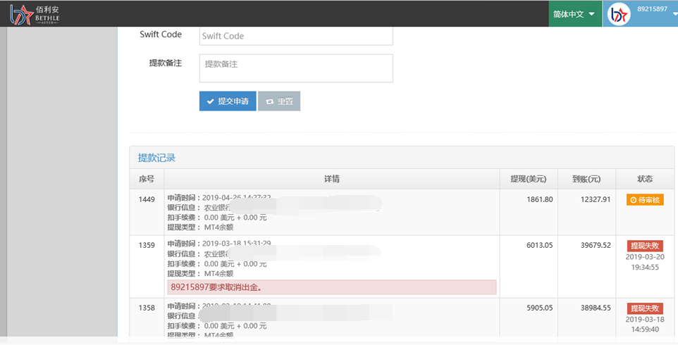 必须客户亏损,才能出金,,客户盈利之后,,扣除盈利不给予出金。