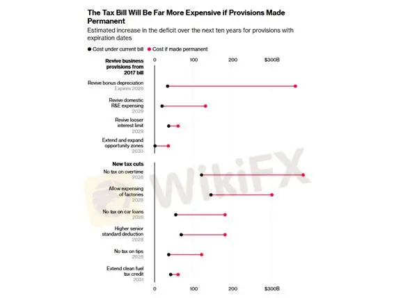 Menurut Komite Gabungan Pajak Kongres, RUU ini diperkirakan menambah defisit federal sebesar $3,72 triliun dalam 10 tahun ke depan, menimbulkan kekhawatiran terhadap keberlanjutan fiskal. Kejadian ini langsung melemahkan ekspektasi pasar akan pengesahan pemotongan pajak pada 2026 dan menunjukkan bahwa arah kebijakan Trump belum sepenuhnya pasti.