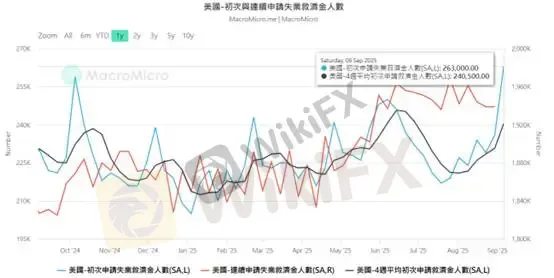 Klaim awal tunjangan pengangguran adalah indikator leading yang bisa merefleksikan tren pasar tenaga kerja. Data minggu ini mencatat 263 ribu klaim, tertinggi dalam empat tahun. Dari rata-rata bergerak 4 minggu, tren sudah menunjukkan tanda perubahan struktural.
