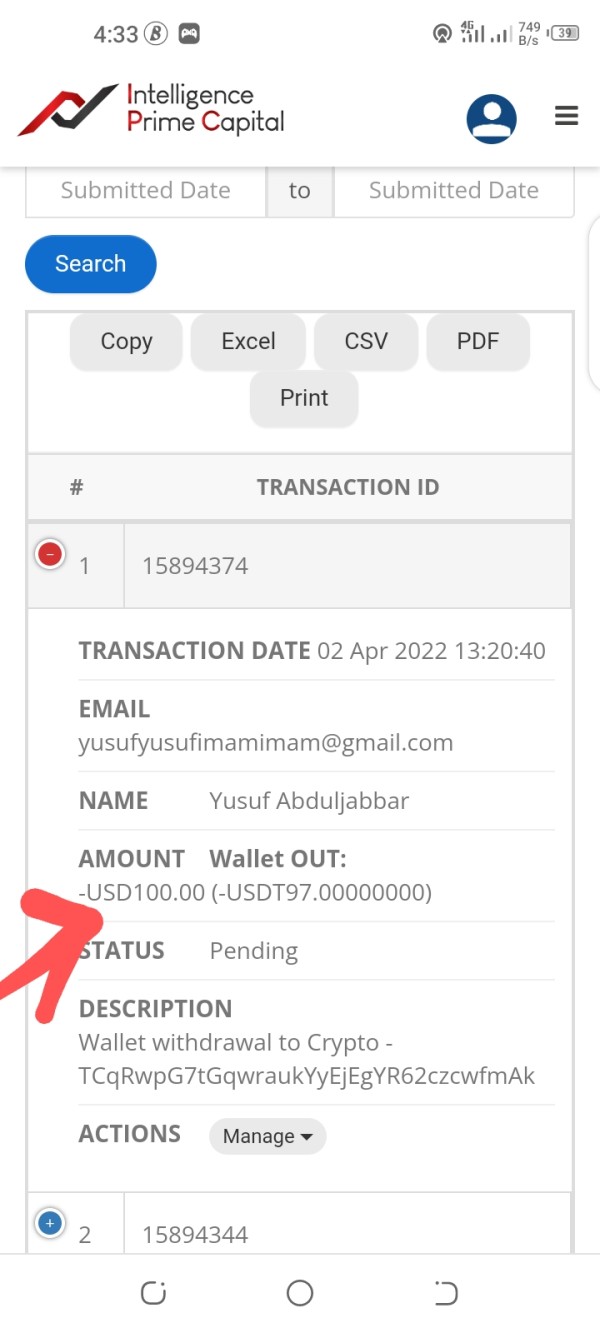 I was unable to withdraw my capital on IPCAPITAL broker since 26th March, 2022. I have $1000 in my account. Break down as follows: 1. $800 in my USDT WALLET which disappear since 26th March, 2022 2. $200 in my MT4 trading capital 3. $100 pending withdrawal since 2nd April, 2022. Also i have not received my profit for the last 2 weeks on 26th March, 2022 and 2nd April, 2022, thus $50 & $27 respectively. Pls, i need your assistance to help get me back my funds. Thank you