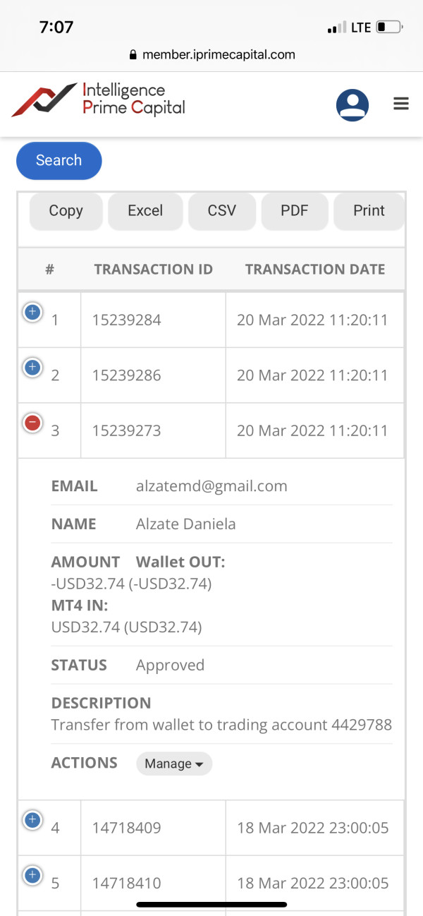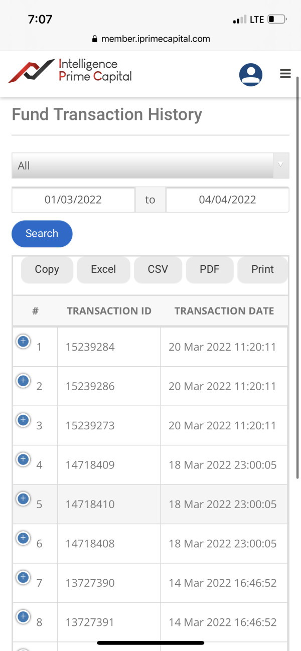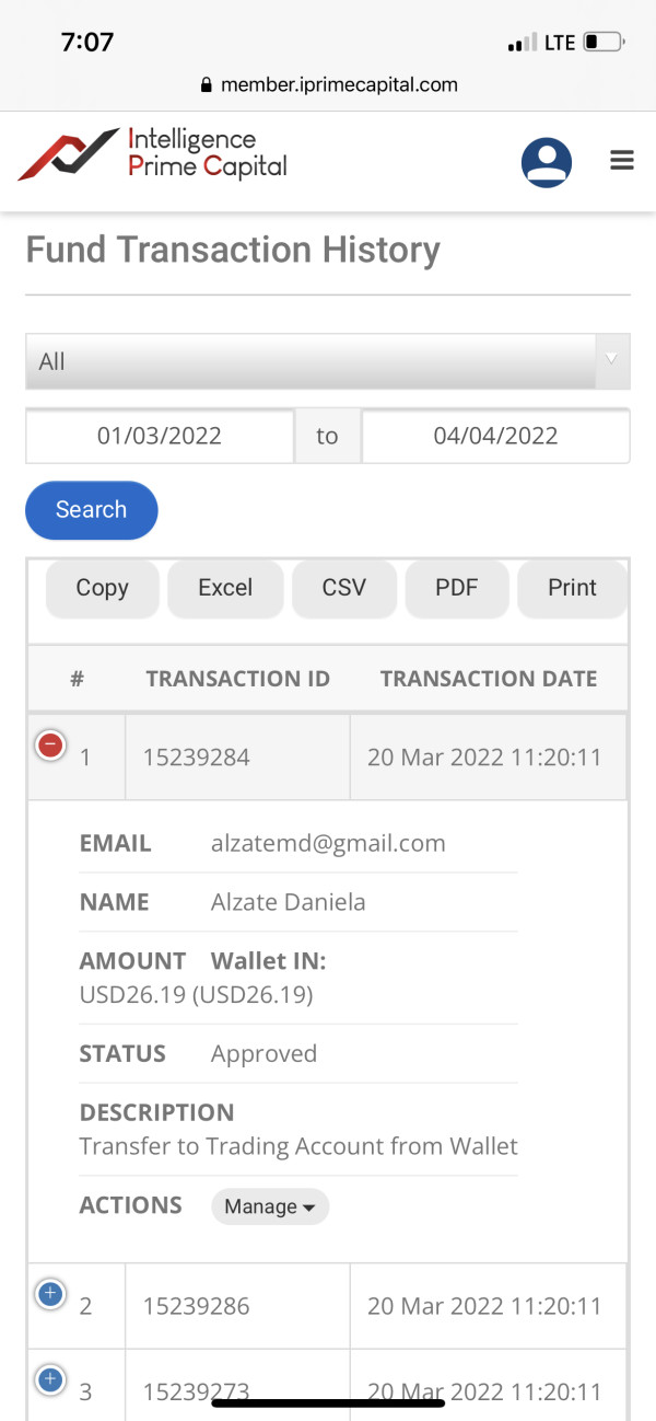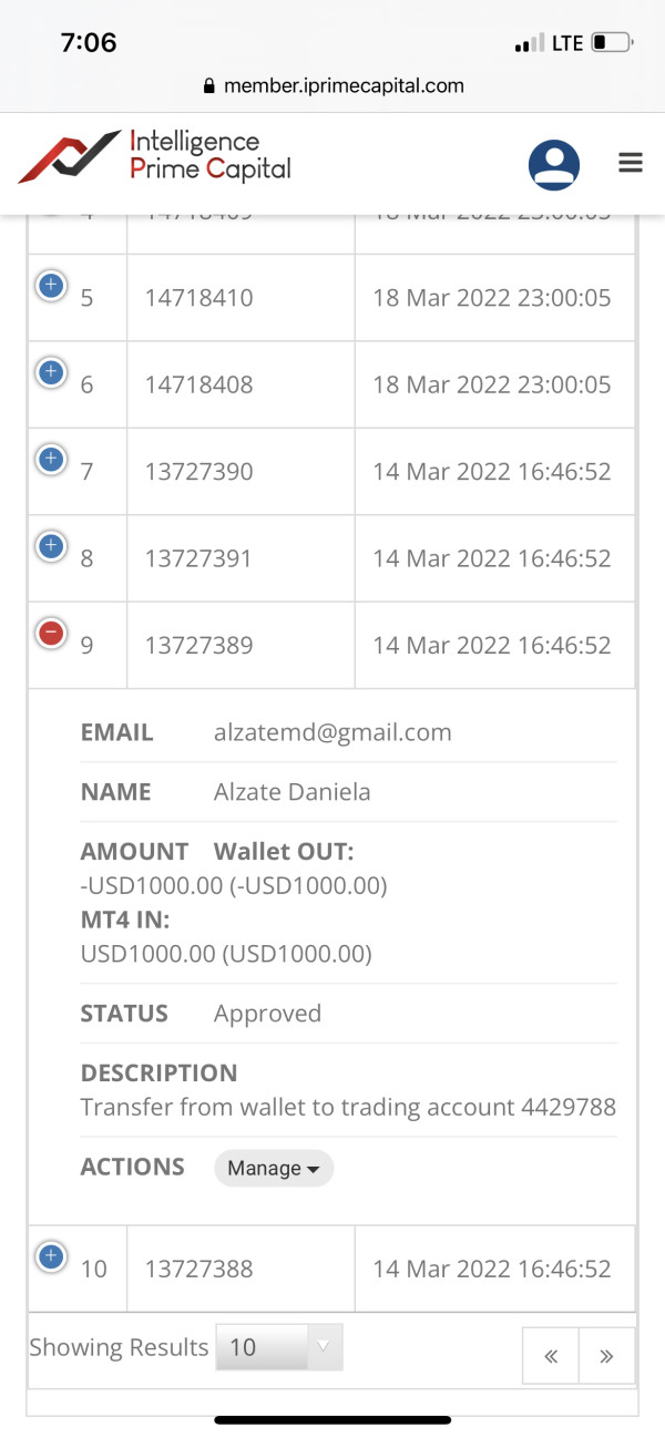 Se fondeó el broker y se adquirió el genius bot, lo cual la primera semana (14/03-20/03) dio resultados y se vieron reflejados en la billetera azul, pero a partir de ahí cada semana se ven los retiros del mt4 pero no llega nada a la billetera de ipcapital haciendo imposible el retiro de ganancias y capital.