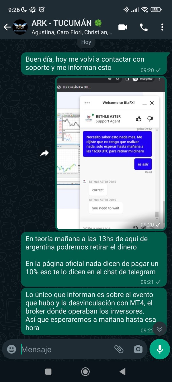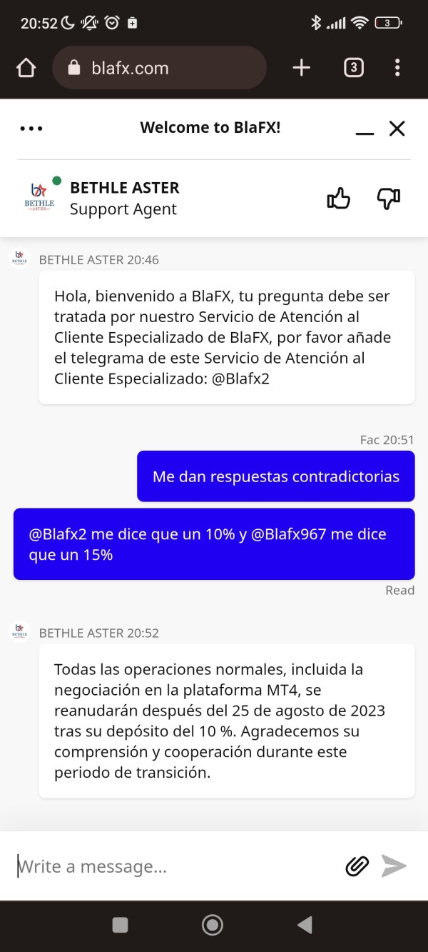 Sin previo aviso informaron que se congelarán los retiros de dinero de la plataforma a raíz de un evento y una consiguiente adquisición de una nueva empresa llamada "Celestial Cloud Dynamics" pasando noticias e información modificada para que los inversores agreguen más dinero hasta el día 25/08. El día 24/08 informaron que si no pagamos dentro de las 24hs un impuesto a la ganancia del 27% nos congelarán la cuenta perdiendo todos los fondos. La página oficial te deriva a un telegram para resolver tus problemas, no lo pueden realizar desde el sitio web, no dan respuesta e insisten en que paguemos más para habilitar la cuenta. Utilizaron esta noticia del año 2022 https://www.sohu.com/a/593546945_430392 y la modificaron para hacernos creer sobre dicha adquisición en una fake news https://ritzherald.com/soaring-15-flowing-cloud-skyrocket-as-market-abuzz-with-blafx-acquisition-rumors/ Se contradicen en el pedido de dinero y todos los referentes de la empresa se borraron