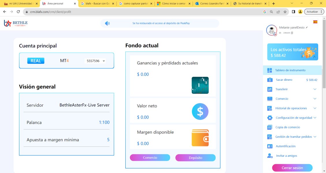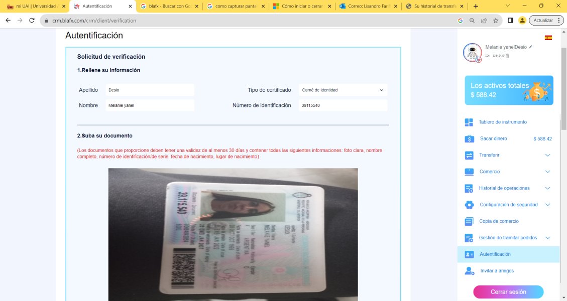 Buenos dias estimados,Esta empresa bloqueo mi dinero y piden que depositemos el 27% por impuestos, antes pidio un 10%, y estan las cuentas bloqueadas. Quiero retirar todo mi dinero a binance, dejo los datos de mi cuenta id 13642430, y el monto que tenia en la app es 588,42. Adjunto print de pantalla