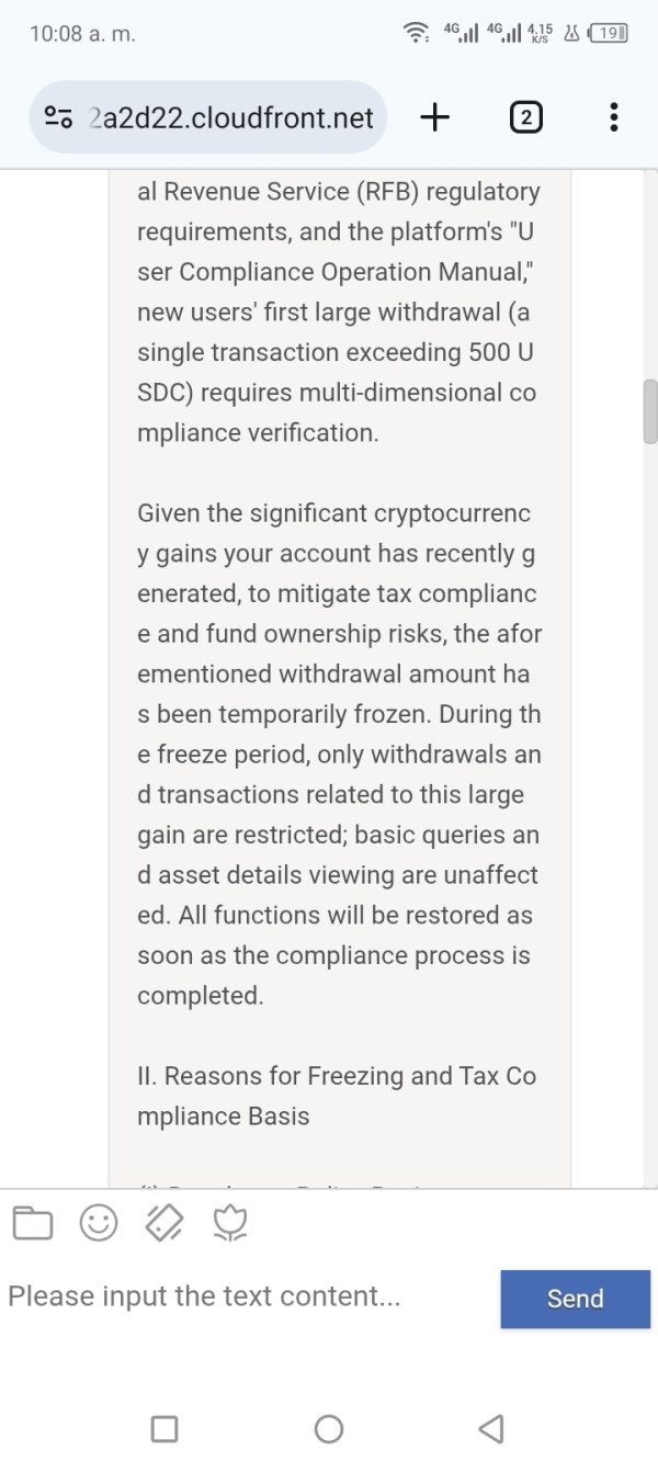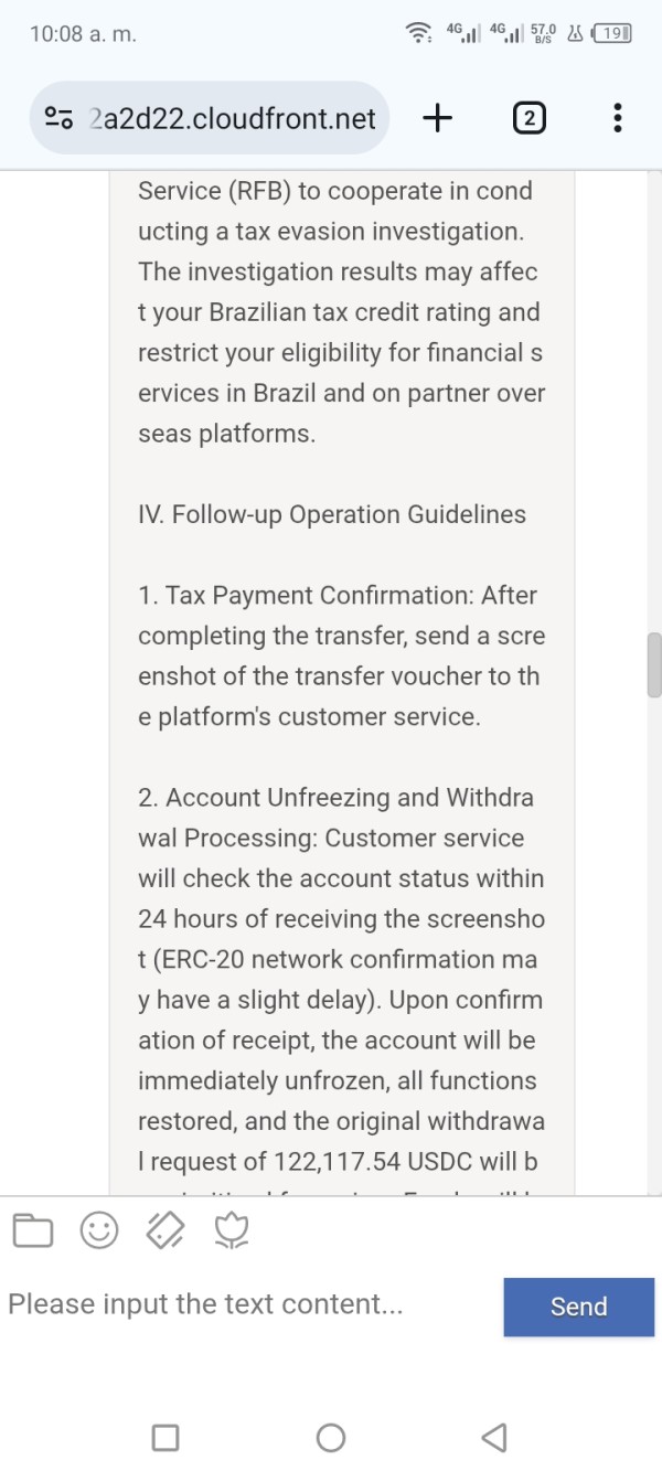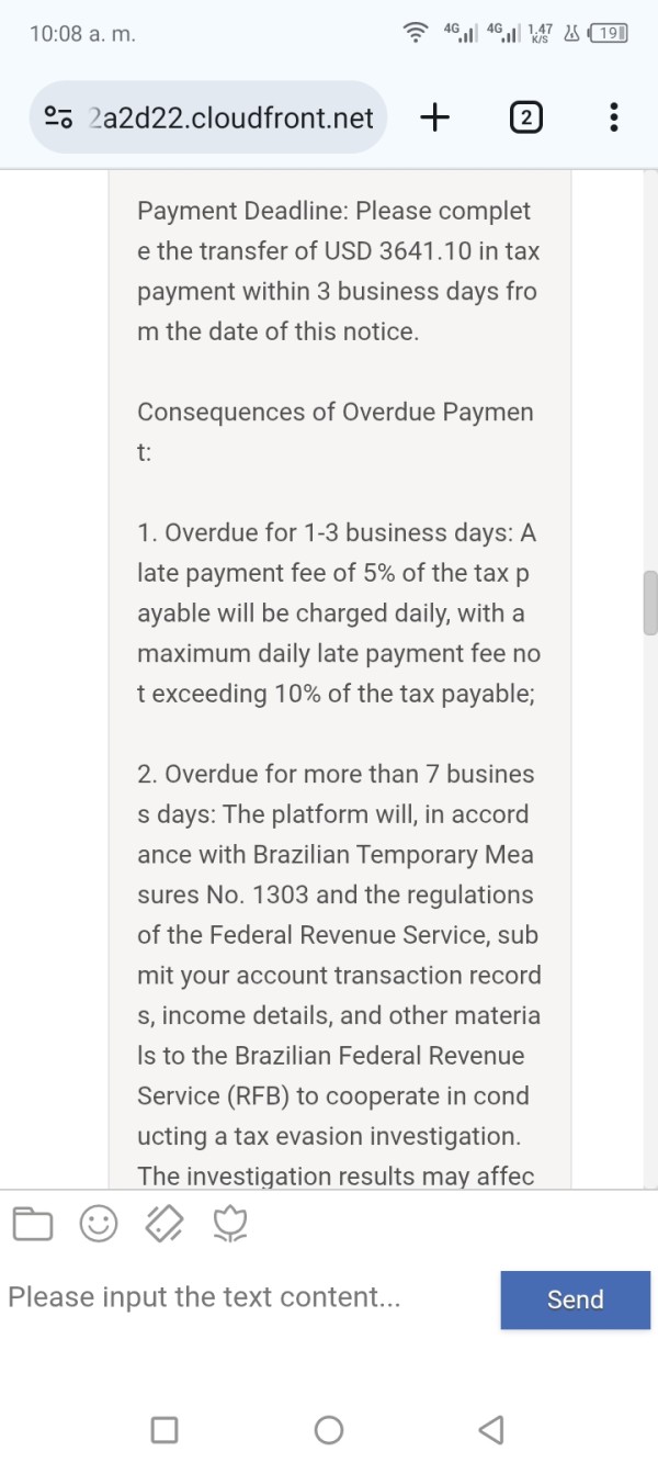 Hola... Quise realizar mi primer retiro de mi cuenta Orbex, por una cantidad de 1000$. Y hasta la fecha no me a llegado el dinero a mi cuenta de Binance. Y escribi a atención al cliente, y ahora me dice que mi cuenta está congelada y debo pagar aproximadamente 4000$ de impuestos!