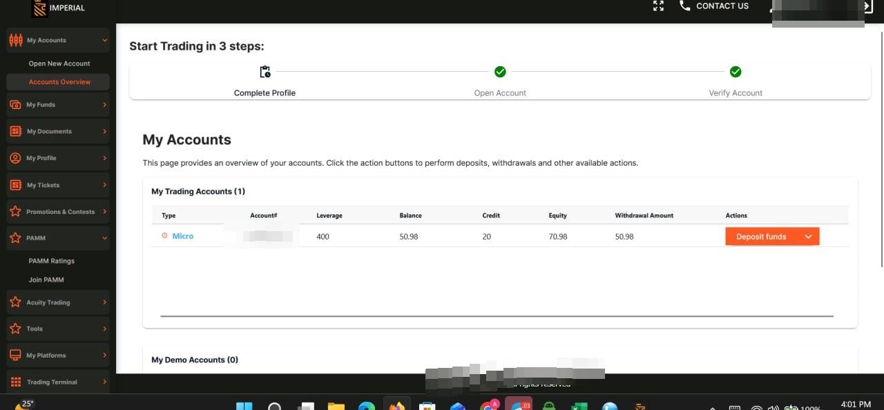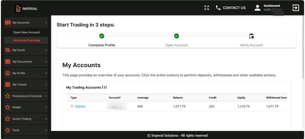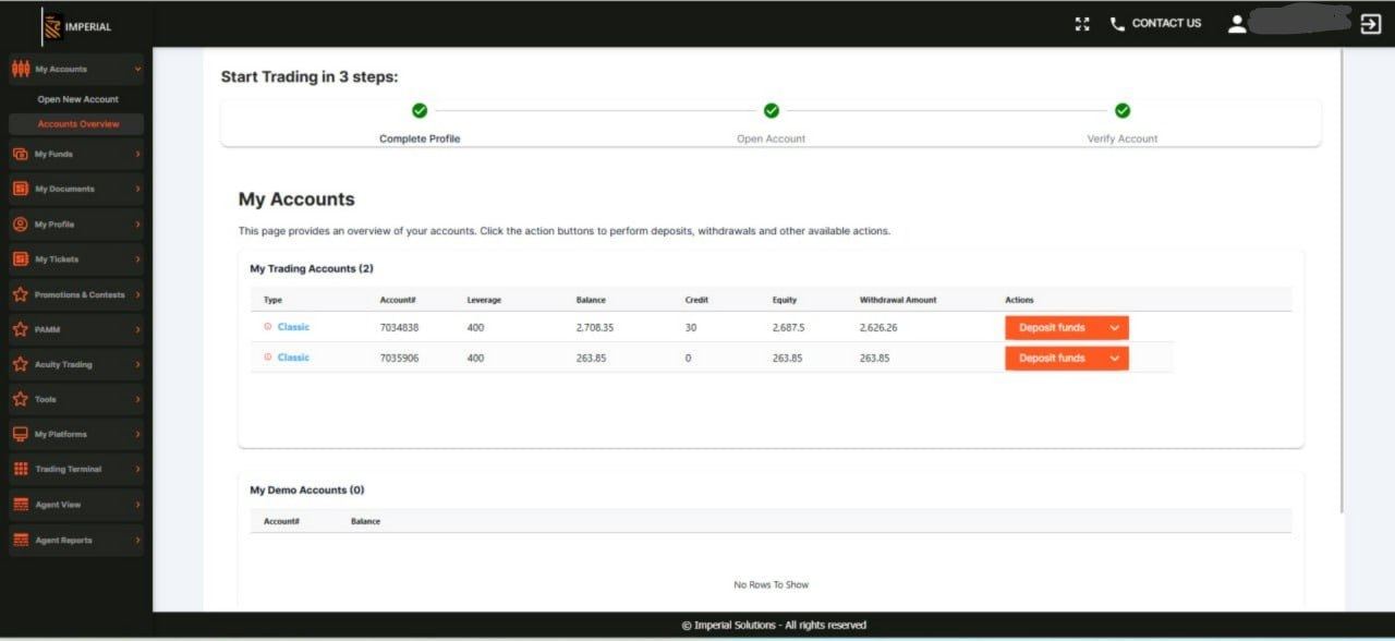 Imperial Solutions はマイクロ、スタンダード、クラシック、プレミアムの4つの外国為替口座タイプを提供しています。