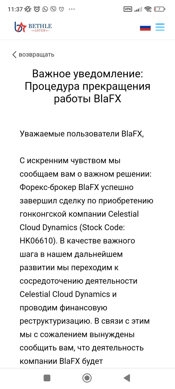 BlaFX.com アカウントが機能を停止しました