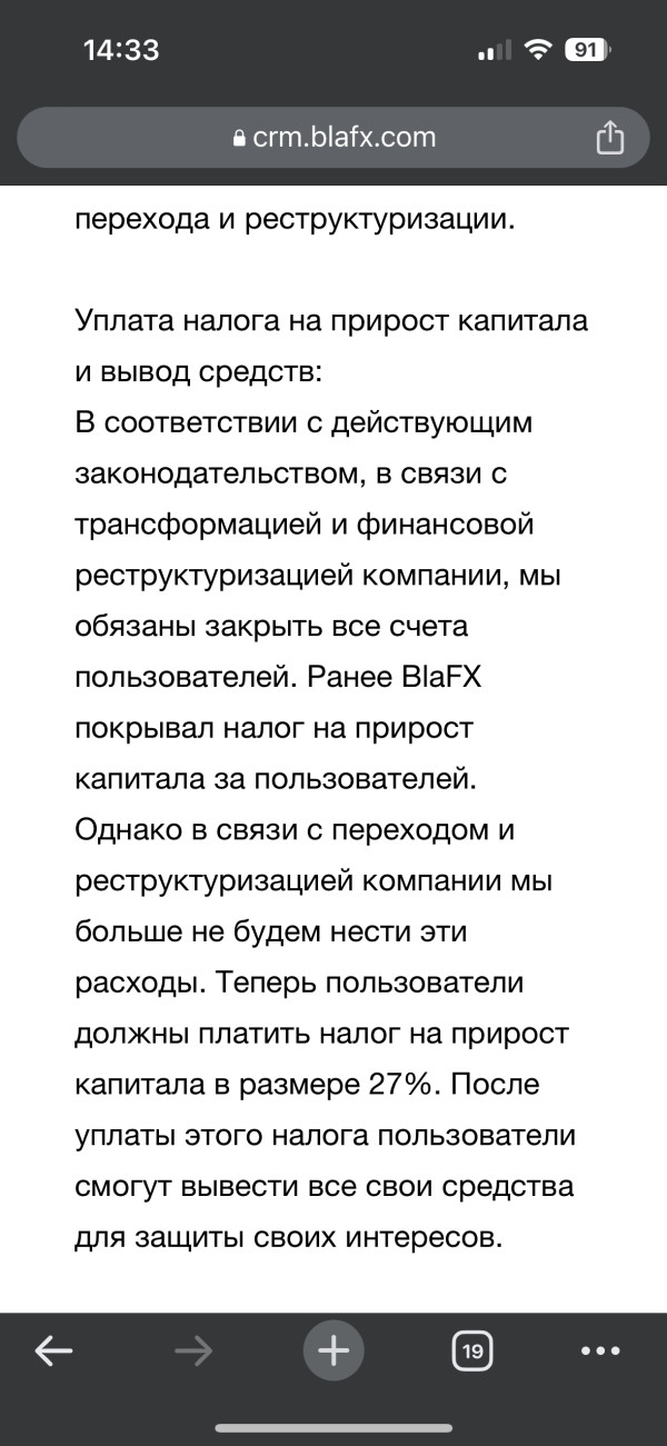 Компания под разным предлогом, не дают снять деньги с 16 августа, просят пополнить 27% от общей суммы, чтобы была возможность вывести средства. Очень сильно прошу помочь