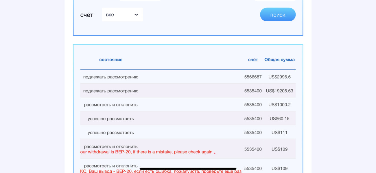 Здравствуйте. Меня зовут Мансур .Я являюсь инвертором биржи BlaFX. Хочу сделать заявление о невозможном выводе денежных средств с моего торгового счета. В настоящее время на платформе запретили вывод денежных средств. О сложившейся ситуации мною не было получено ни одного уведомления. Служба технической поддержки держит обратную связь и требует немедленного пополнения 10% от депозита на мой аккаунт для разморозки торгового счета. Номер торгового счета: 5535400. В случае не пополнения и не выполнения данных условий аккаунт будет удален со всеми денежными средствами. Баланс моего счета: 22202 usdt Рассчитываю на ваше вмешательство и скорейшую обратную связь. С Уважением, инвестор платформы Мансур