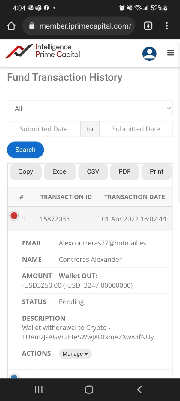 It has been too late in the payments. They do not report what is happening with the company. It is not known what is happening. They won't let me withdraw my money.