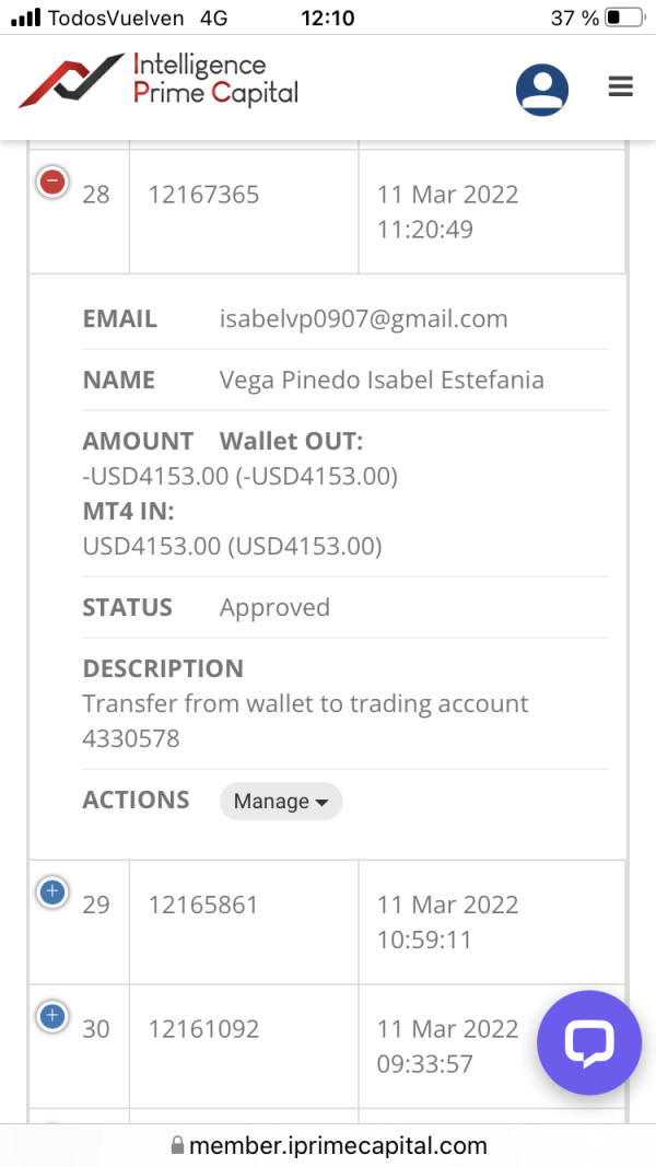 hoy 28 de marzo mi boquer MT4 no generó ganancias de mi capital de 6,006 usd de capital un retiro de 234 dólares y la ganancia de esta semana de 230 usd y solicitó la devolución de mi usd