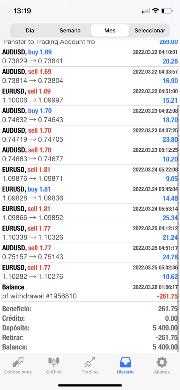 el meta trader 4 no generó mis ganancias el día 28 de marzo 2022 y tampoco puedo retirar mis ganancias de la semana del día 21 al 25 de marzo