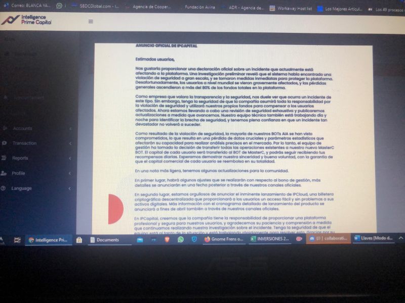 Fraude. Não nos pagam nem devolvem o capital de giro