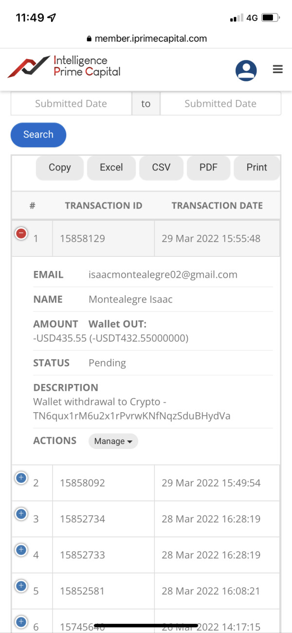 good day, I want to comment on my situation 2 weeks ago we have not received the payment of our benefits and the company still has not given us a reason in this regard we cannot withdraw our capital and the company has not made a statement our investment is frozen