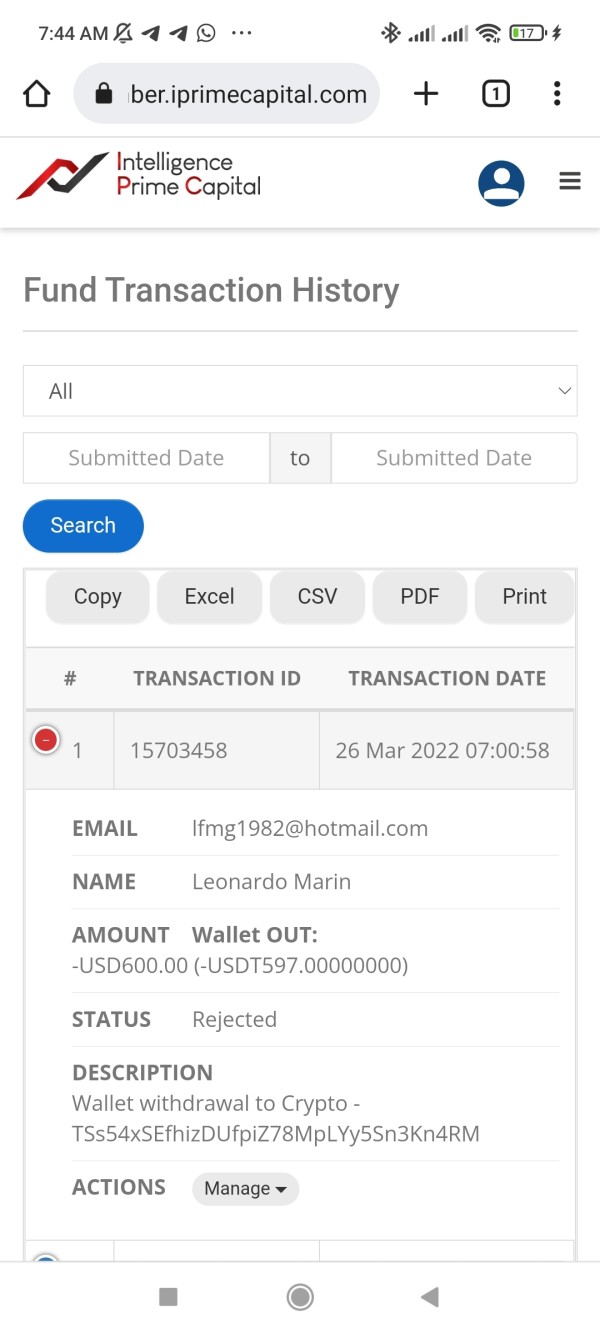 friends, good morning, I have a problem with this withdrawal since March 26 with the company ipcapital, the company has not given me a statement or a solution, could you please help me so that I can receive the disbursement, thank you very much