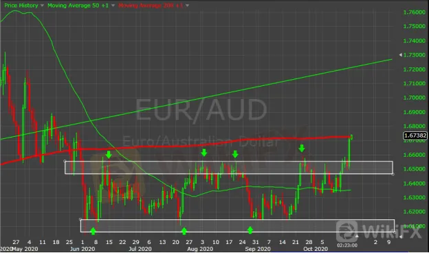 Eur/Aud - Momentum de alta rompe a área de forte resistência e atinge a média móvel de 200