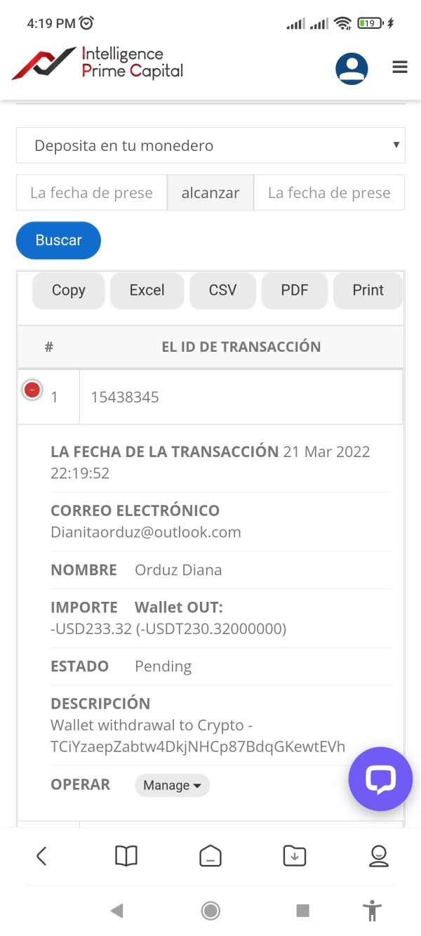 me he tratado de comunicar con el soporte de ipcapital no contestan y nadie da respuesta de la tranferencias de se realizaron el de 21 de marzo de 2022 como lo dejo en la foto que todavía aparese en pendiente sin respuesta