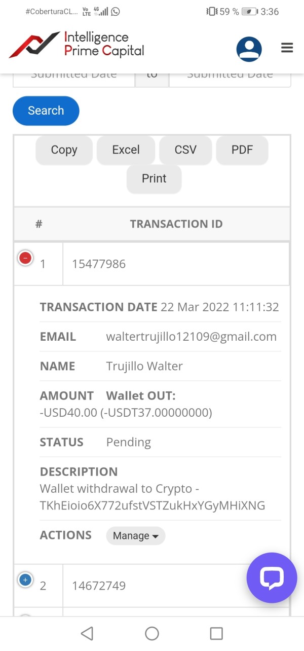 Se solicita la retirada del dinero capital de trabajo por 800usd,el día 26 de marzo de 2022,a las 10:47am,sin ninguna respuesta positiva, hoy 28 de marzo de 2022, y el 22 de marzo de 2022 se solicita el pago de la semana a las 11:11 am sin tener solución, la página cierra su entrada a su backoffice, se solicita a , la ayuda para q podamos recuperar nuestro dinero, hay mucha gente con el mismo problema, ellos no están pagando las ganancias del Trading y no están devolviendo el dinero de capital.
