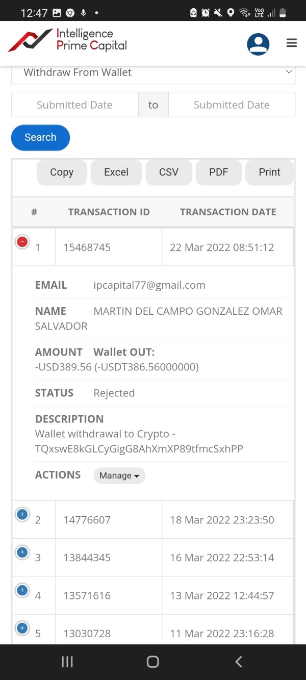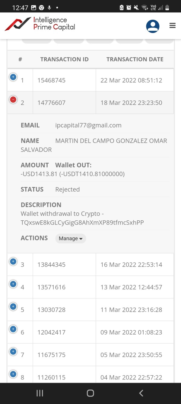 en días pasados retire la cantidad de 2100 dólares el día 26 de marzo. 1400 dólares el 18 de marzo y 380 dólares el 22 de marzo dando una suma de más de 3800 dólares que os perdieron. y los rechazaron por que fueron víctimas de un hackeo, y mi dinero desapareció y nadie se hace responsable un broker regulado no puede tener tan delgado su sistema de seguridad.