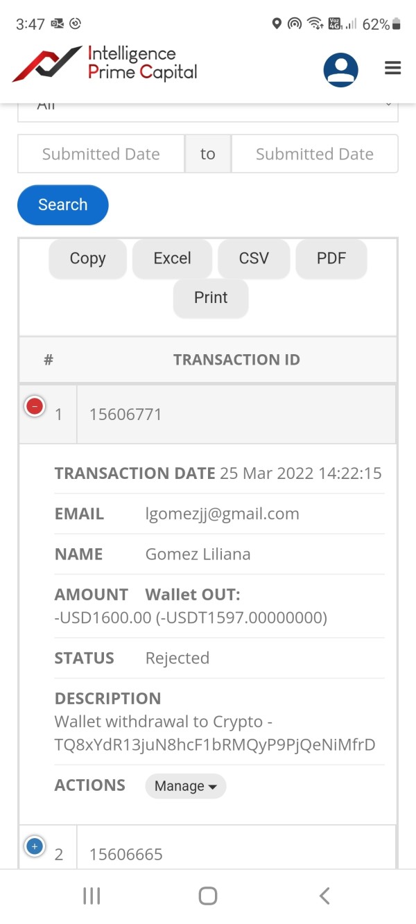El 25 de marzo de 2022 gestione el retiro del 1600 USDT de la plataforma de IPC.a mi trust wallet y de forma unilateral fue rechazado mi retiro y además, nos obligaron a cambiar el robot de forex al robot de criptomonedas, y creo que esto los dejaría sin regulación alguna o sea quedamos desprotegidos.