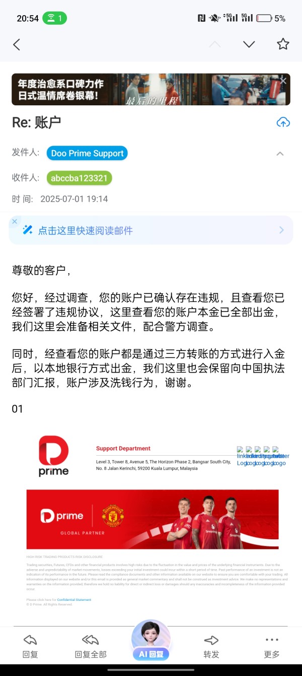 dooprime这是黑平台 大家 小心 今天开始以非法经营罪举报该平台的代理和客户经理。 还恐吓客户。 希望大家远离