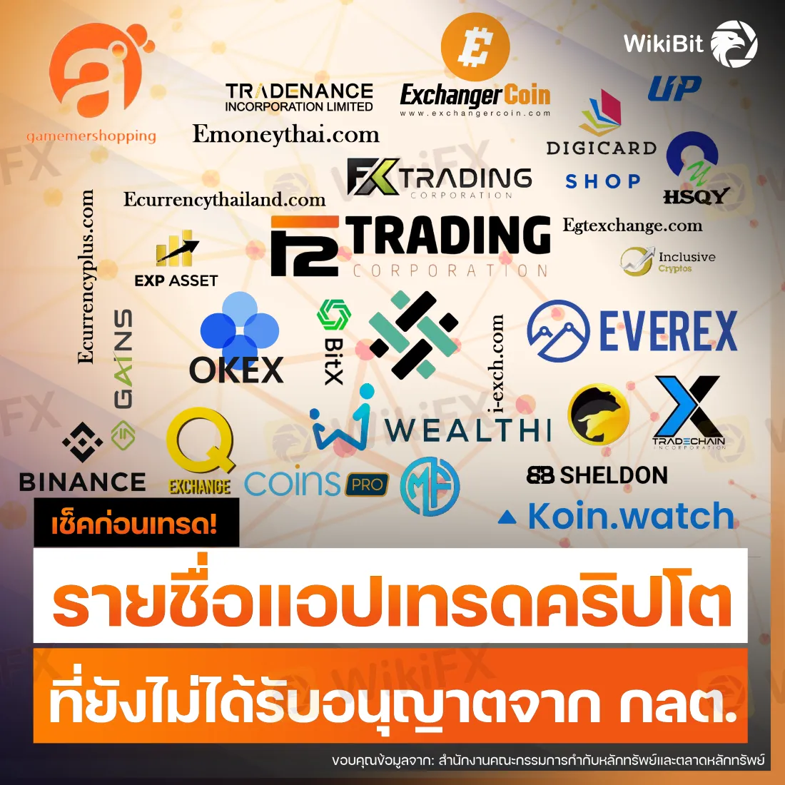 แอปเทรดคริปโตที่ยังไม่ได้รับใบอนุญาตจาก กลต. ไทย ได้แก่