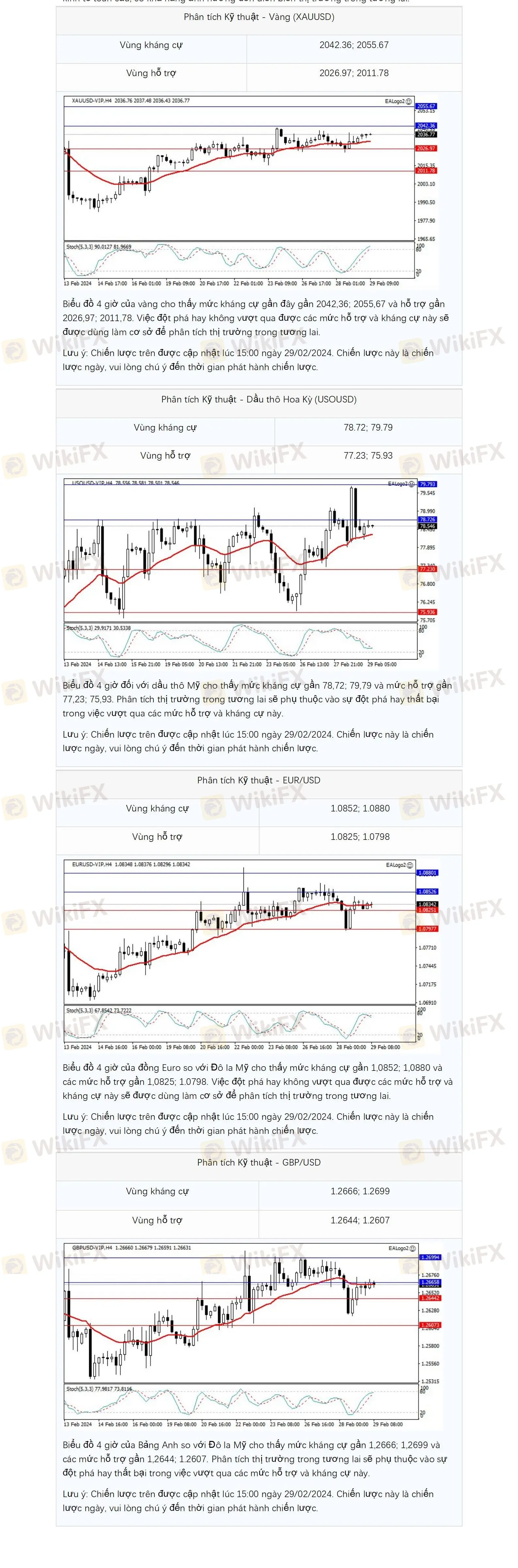 Phiên giao dịch thị trường châu Á đưa ra một bức tranh trái chiều, với tỷ giá USD/JPY giảm nhẹ sau khi Nhật Bản báo cáo sản xuất công nghiệp giảm đáng kể. Đồng Đô la Úc chứng kiến sự phục hồi sau dữ liệu doanh số bán lẻ, trong khi đồng Euro và Bảng Anh lần lượt giảm nhẹ và tăng nhẹ. Giá vàng tiếp tục tăng, đạt 2.036 USD/ounce. Trong tương lai, trọng tâm của thị trường sẽ là các chỉ số kinh tế khác nhau, bao gồm tỷ lệ thất nghiệp của Đức, chỉ số giá chi tiêu tiêu dùng cá nhân cốt lõi của Hoa Kỳ và tăng trưởng GDP của Canada, cùng nhiều chỉ số khác. Những điểm dữ liệu này dự kiến sẽ cung cấp những hiểu biết sâu sắc hơn về bối cảnh kinh tế toàn cầu, có khả năng ảnh hưởng đến diễn biến thị trường trong tương lai.