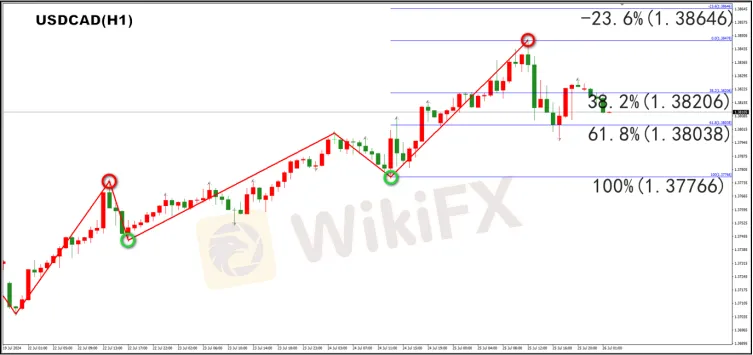 Phân tích cơ bản:Khi thị trường đã tiêu hóa xong kỳ vọng về việc Cục Dự trữ Liên bang (Fed) sẽ giảm lãi suất, động lực bán khống đồng USD suy yếu, xuất hiện sự phục hồi kỹ thuật. Thêm vào đó, GDP quý hai của Mỹ được công bố hôm qua cao hơn dự kiến, cho thấy Fed có thể không vội vàng giảm lãi suất, cung cấp sự hỗ trợ cho USD. Do đó, USD/CAD thể hiện xu hướng tăng giá và có thể tận dụng cơ hội này để bố trí chiến lược mua vào.